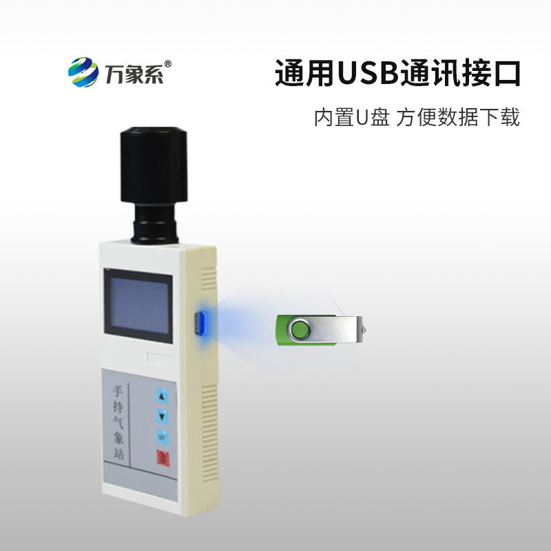 手持式氣象站,又稱手持氣象儀,是一款攜帶方便,操作簡單,集多項氣象要素于一體的可移動式氣象觀測儀器。系統采用精密傳感器及智能芯片,能同時對風向、風速兩項氣象要素進行準確測量。內置大容量FLASH存儲芯片可存儲至少一年的氣象數據;通用USB通訊接口,接入U盤導出數據,方便用戶對氣象數據的進一步處理分析。