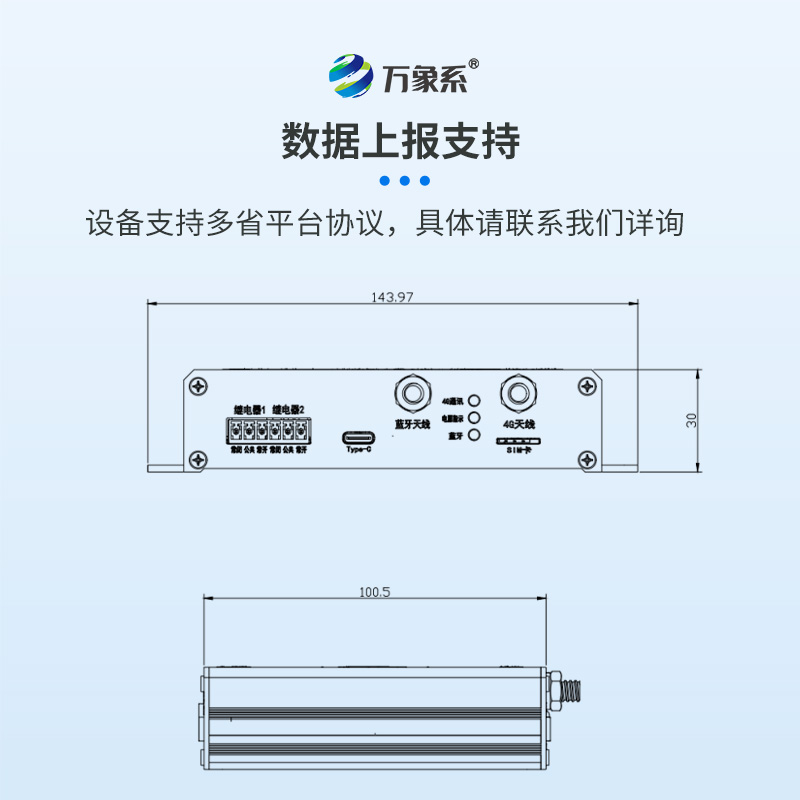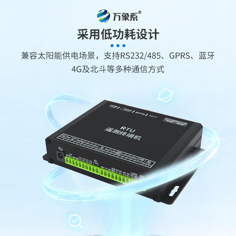 該設備采用低功耗設計,兼容太陽能供電場景,支持RS232/485、GPRS、藍牙、4G及北斗等多種通信方式。